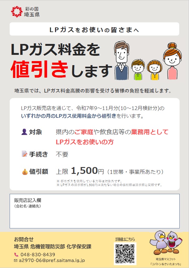 埼玉県第4回LPガス料金負担軽減補助事業についてのお知らせ