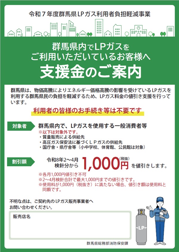 令和7年度(第3回)群馬県LPガス利用者負担軽減事業についてのお知らせ