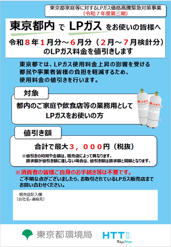 弊社は令和8年4月検針時と5月検針時にそれぞれ最大1,500円、合計で最大3,000円値引きいたします。4月および5月の明細・請求書にてご確認ください。