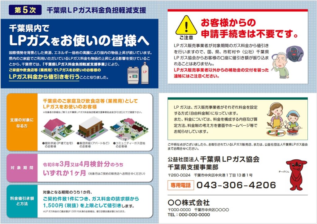 第5次千葉県LPガス料金負担軽減支援についてのお知らせ